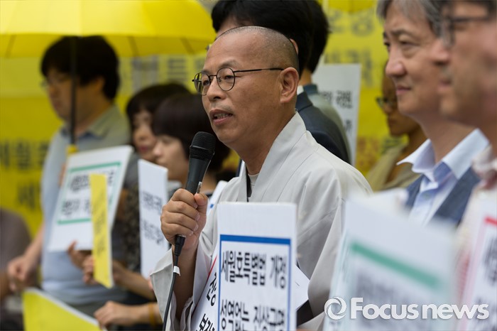 (서울=포커스뉴스) 29일 오후 서울 광화문광장에서 세월호특조위 진상규명활동 보장 촉구 기자회견에 참석한 법인 참여연대 공동대표가 모두발언 하고 있다.