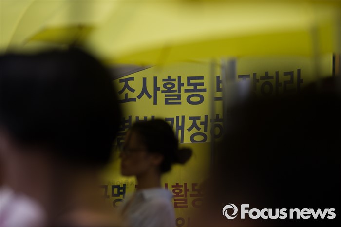 (서울=포커스뉴스) 참여연대 관계자들이 29일 오후 서울 광화문광장에서 세월호특조위 진상규명활동 보장 촉구 기자회견에 참석한 참여연대 관계자들이 세월호특별법 개정을 촉구하고 있다.