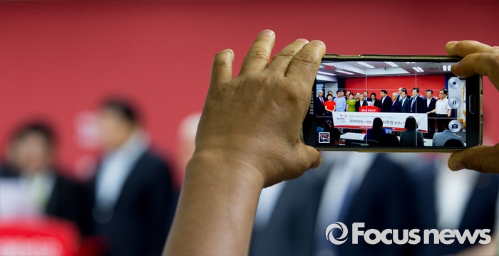 (서울=포커스뉴스) 새누리당 중앙위원회 17개 분과 위원장들과 상임전국위원, 지도위원 등이 29일 오후 서울 여의도 당사에서 전당대회 출마를 선언한 이주영 의원 지지 기자회견을 하고 있다.