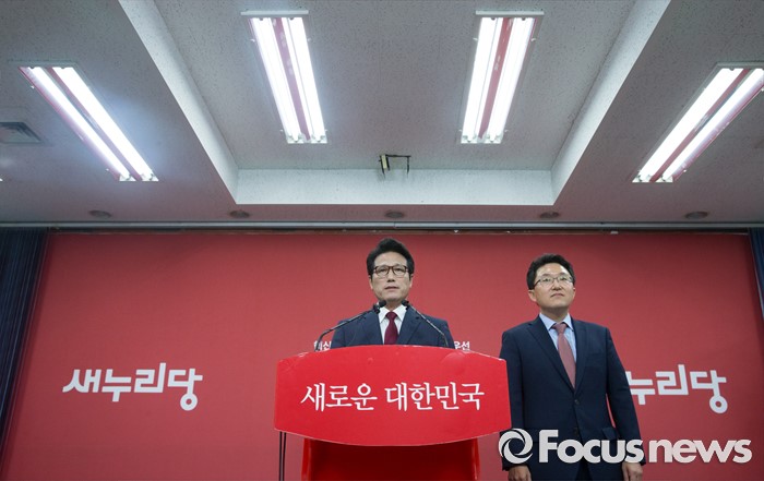 (서울=포커스뉴스) 전당대회 대표최고위원 출마를 선언한 정병국(왼쪽), 김용태 새누리당 의원이 29일 오후 서울 여의도 당사에서 단일화 발표 기자회견을 하고 있다. 이날 두 의원은 여론조사를 통해 정병국 의원으로 단일화를 결정했다.