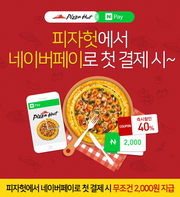 (서울=포커스뉴스) 피자헛이 네이버페이 입점을 기념해 29일부터 다음달 11일까지 2주간 네이버페이 첫 결제 고객에게 포인트 2000원을 지급하는 이벤트를 진행한다.