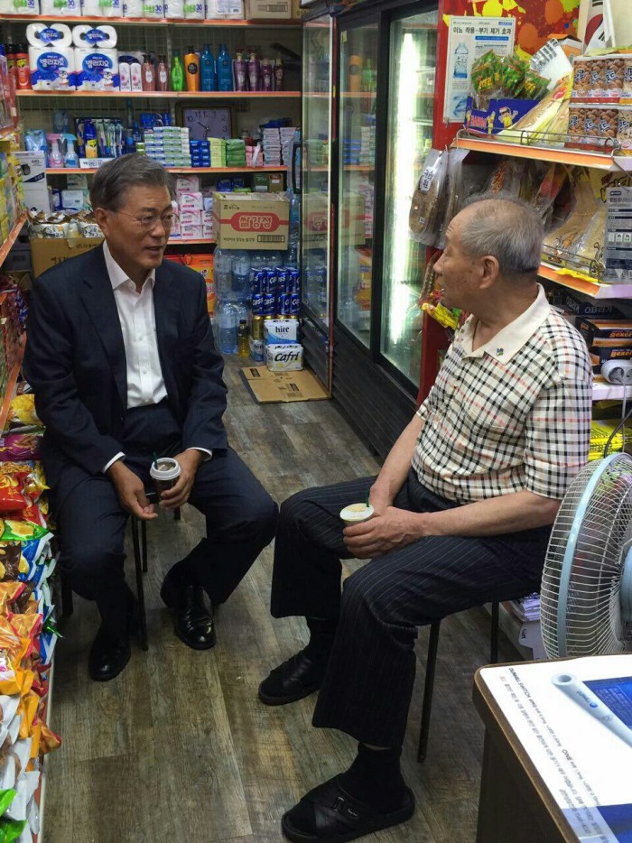 문 전대표는 "한창 더위에 잘 지내시는지, 여름 내의를 사 들고 가게를 찾았다"며 "작년 이맘때 뵙고 1년 만에 방문했다"고 설명했다.