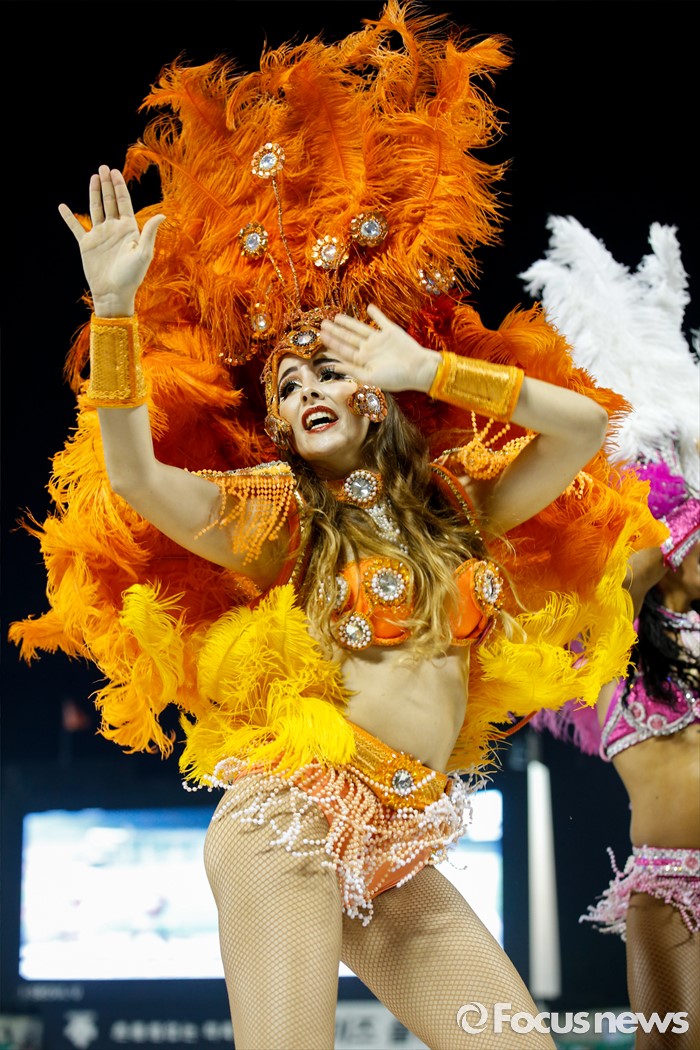 (서울=포커스뉴스) 26일 서울 잠실구장에서 열린 2016 프로야구 한화-두산 경기를 찾은 브라질 무용단이 열띤 공연을 펼치고 있다.