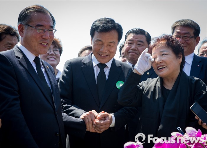 손학규 전 고문은 10여분 가량 머물며 안부를 주고 받았지만 정치적인 질문에는 미소만 지은 채 답변을 피한 것으로 전해졌다. 정계 복귀 시점에 대한 질문에도 특별한 대답 없이 해남지역의 유명 문화인들에 대해서만 이야기한 것으로 알려졌다.36주년 5·18민주화운동 기념식이 거행된 18일 오전 광주 북구 운정동 5·18민주묘지에서 손학규 전 더불어민주당 상임고문이 유가족들을 위로하고 있다. 2016.05.18 양지웅 기자