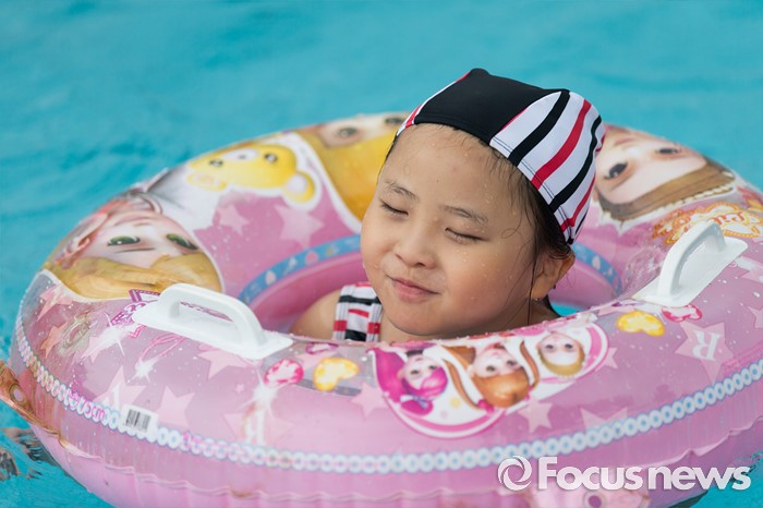 (서울=포커스뉴스) 30일 오전 서울 마포구 망원한강공원 수영장을 찾은 시민들이 물놀이를 즐기고 있다.