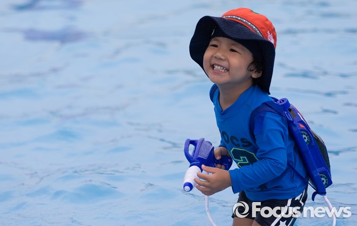 (서울=포커스뉴스) 30일 오전 서울 마포구 망원한강공원 수영장을 찾은 시민들이 물놀이를 즐기고 있다.