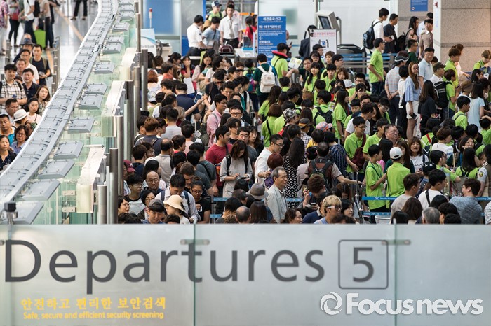 (인천공항=포커스뉴스) 본격적인 휴가철을 맞은 31일 오전 인천국제공항 출국장이 여행객들로 붐비고 있다. 인천국제공항은 지난 30일 총 19만 3420명의 이용객들이 공항을 이용해 이용객수 1위를 갱신했다.