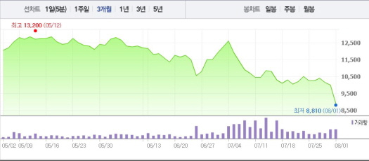 앞서 넥슨지티는 7월29일 넥슨과 공동사업계약 해지를 공시했다. 넥슨지티는 해지사유에 대해 “사업타당성 재검토에 따른 양사 합의해지”라고 설명했다.주가흐름<사진출처=네이버 캡쳐>