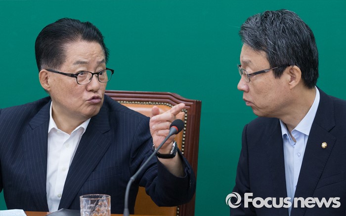 (서울=포커스뉴스) 1일 오전 서울 여의도 국회에서 열린 국민의당 비상대책위원회의에 참석한 박지원(왼쪽) 비상대책위원장과 김성식 정책위의장이 대화하고 있다.