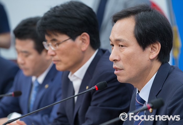 (서울=포커스뉴스) 우상호 더불어민주당 원내대표가 1일 김영란법(부정청탁 및 금품 등 수수의 금지에 관한 법률)에 대해 "해당 법 가액은 13년 전 기준"이라며 "농축산업·음식점 피해 최소화를 위해 대통령과 행정부가 나서 합리적인 시행령을 마련해야 한다"고 촉구했다.