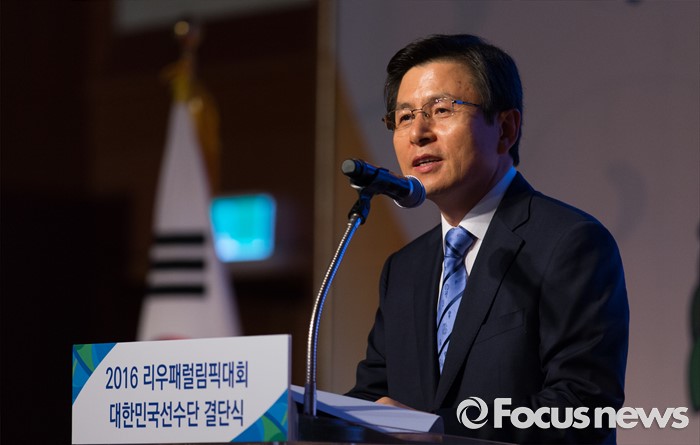 (서울=포커스뉴스) 황교안 국무총리가 2일 오후 서울 송파구 올림픽파크텔에서 열린 2016 리우 패럴림픽 대한민국 선수단 결단식에 자리해 격려사를 하고 있다.