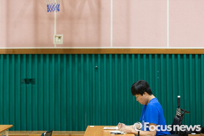 (서울=포커스뉴스) 3일 오전 서울 종로구 경운학교에서 열린 '2016년 초·중·고졸 학력인정 제2회 검정고시'에 한 응시자가 시험준비를 하고 있다.