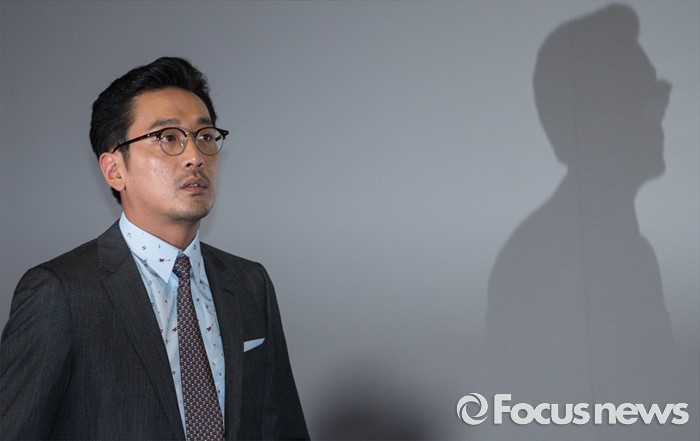 (서울=포커스뉴스) 3일 오후 서울 강남구 메가박스 코엑스점에서 열린 영화 '터널' 언론시사회에 참석한 배우 하정우가 자리를 향해 이동하고 있다.