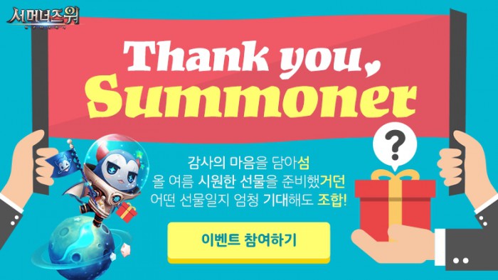 컴투스 관계자는 "2년 넘는 서비스 기간 동안 서머너즈 워를 아껴주신 소환사분들께 감사하는 마음을 담아 자체제작 선물 세트 서머타임팩을 준비했다"며 "앞으로도 유저들이 만족할 수 있는 업데이트와 이벤트로 최고의 서비스를 이어갈 것"이라고 전했다.