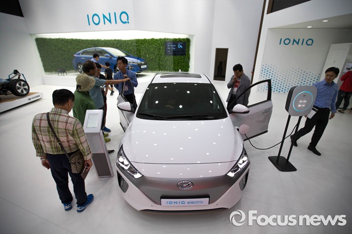 현대·기아차, GM대우, 르노삼성, BMW 등국내주요 전기차 제작사들도 참석해 향후 전기차를 구매할 전력공기업과 전기차 인도·인수 행사를 진행했다.(부산=포커스뉴스) 3일 오후 부산 해운대구에 위치한 벡스코에서 열린 '2016 부산국제모터쇼'에 현대 '아이오닉 일렉트릭' 차량이 전시되어 있다. 2016.06.04 성동훈 기자