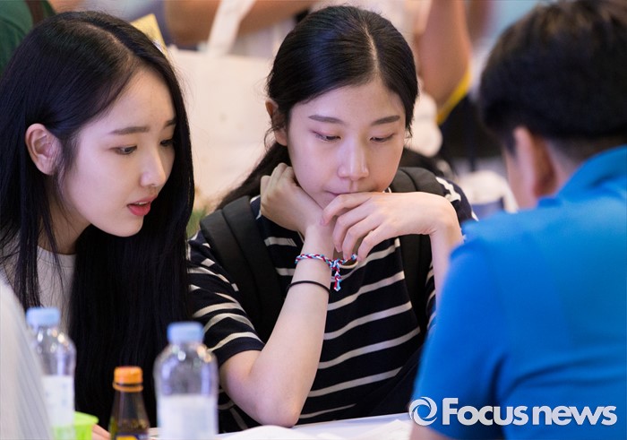 (서울=포커스뉴스) 3일 오후 서울 강남구 코엑스에서 2017학년도 수시 전문대학 입학정보 박람회를 찾은 학생들이 입시상담을 하고 있다.