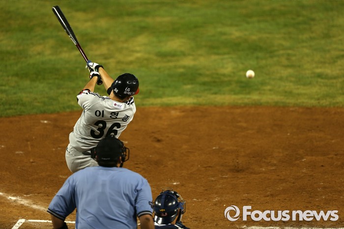 (서울=포커스뉴스) 2일 오후 서울 잠실구장에서 열린 2016 프로야구 LG-두산 경기 9회초 2사 1루 상황, 이형종이 중견수 앞 1루타를 치고 있다.