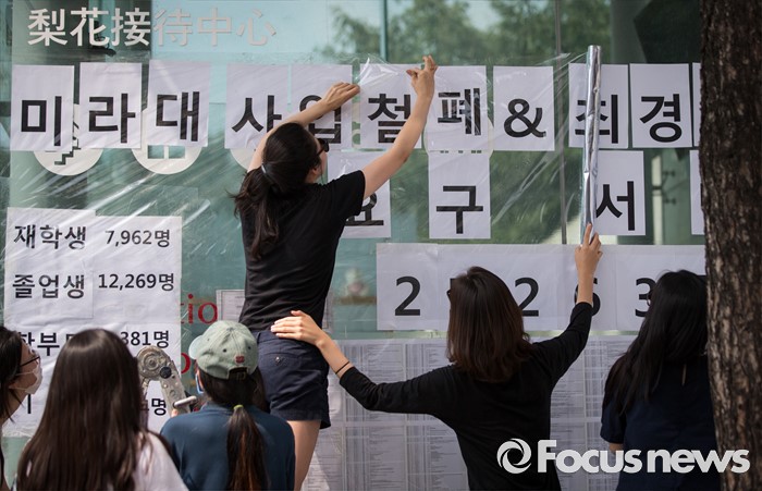 | △ 강도 높게 시위 이어가는 이화여대 학생들 |