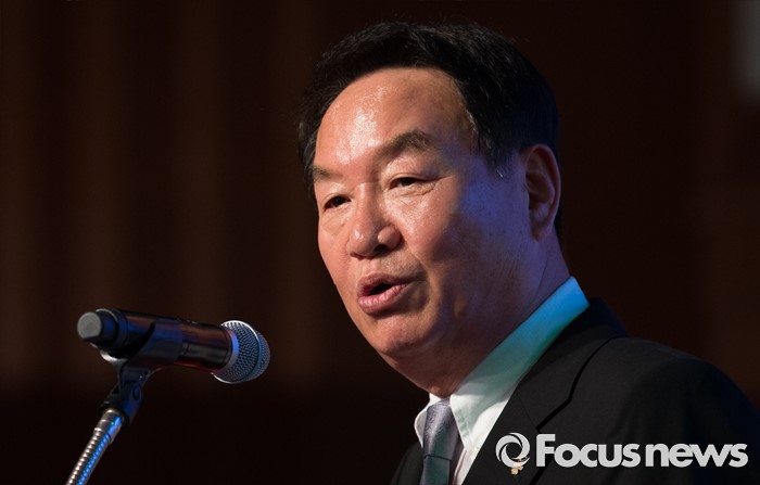 (서울=포커스뉴스) 2일 오후 서울 송파구 올림픽파크텔에서 열린 2016 리우 패럴림픽 대한민국 선수단 결단식에 참석한 김성일 대한장애인체육회 회장이 격려사를 하고 있다.