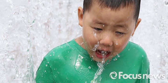 (청주=포커스뉴스) 전국 대부분 지역에 폭염특보가 내려진 1일 오후 충북 청주 오송호수공원 분수대에서 어린이들이 더위를 식히고 있다.