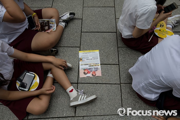 (서울=포커스뉴스) 3일 오후 서울 종로구 구 일본대사관 앞에서 열린 '제1242차 일본군 위안부 문제해결을 위한 정기 수요집회'에 교복을 입은 학생들이 참석하고 있다.