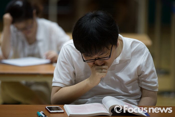 (서울=포커스뉴스) 3일 오전 서울 종로구 경운학교에서 열린 '2016년 초·중·고졸 학력인정 제2회 검정고시'에 한 응시자가 시험준비를 하고 있다.