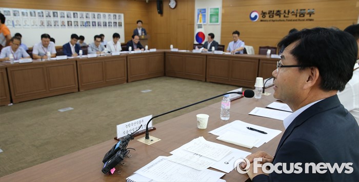 (세종=포커스뉴스) 김경규(왼쪽) 농림축산식품부 식품산업정책관이 2일 오후 세종시 정부세종청사 농식품부 대회의실에서 부정청탁 및 금품 수수의 금지에 관한 법률(김영란법) TF회의를 주재하고 있다.