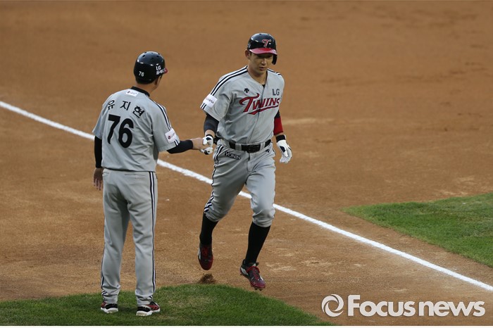 (서울=포커스뉴스) 2일 오후 서울 잠실구장에서 열린 2016 프로야구 LG-두산 경기 1회초 무사, 손주인이 솔로 홈런을 치고 홈으로 달리고 있다.