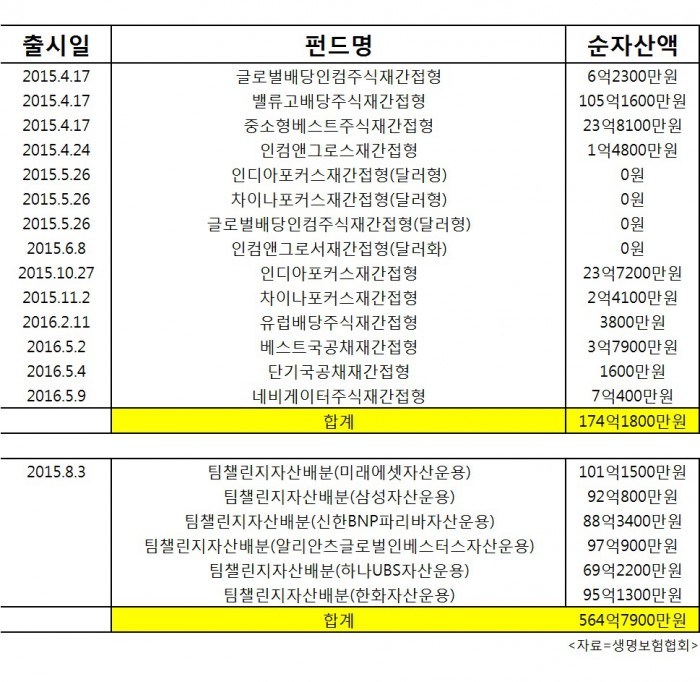 반면 비슷한 시기에 출시한 팀챌린지의 순자산액은 564억7900만원이나 된다.