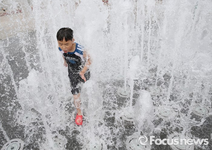 (청주=포커스뉴스) 전국 대부분 지역에 폭염특보가 내려진 1일 오후 충북 청주 오송호수공원 분수대에서 어린이들이 더위를 식히고 있다.
