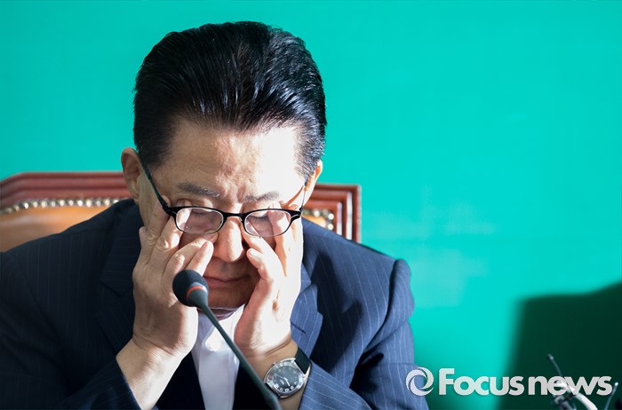 (서울=포커스뉴스) 3일 오전 서울 여의도 국회에서 열린 국민의당 비상대책위원회의에 참석한 박지원 비대위원장이 얼굴을 만지고 있다.