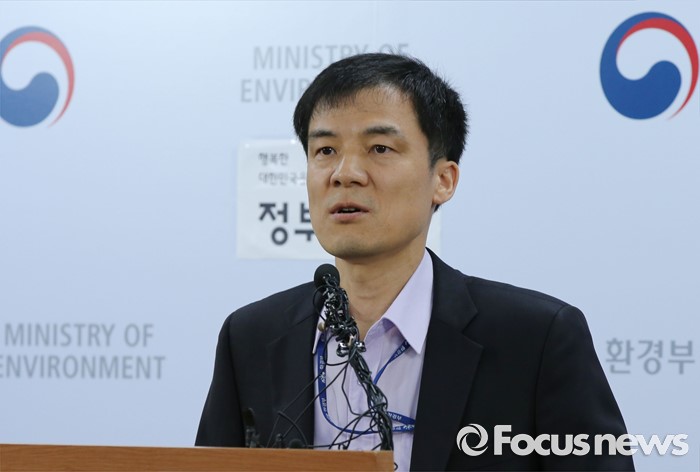 (세종=포커스뉴스) 홍동곤 환경부 교통환경과장이 2일 오전 세종시 정부세종청사 환경부 기자실에서 위조서류로 불법인증을 받은 폭스바겐 32개 차종(80개 모델)에 대해 인증취소 처분을 내렸다고 밝히고 있다.