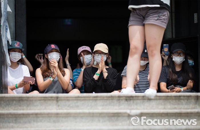 | △ 성명서 발표하며 환하게 웃는 이화여대 학생들 |