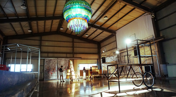 '신남전기'가 프로젝션 맵핑과 조명을 이용해 공간의 풍경을 다채롭게 채색하는 미디어 아트를 선보이고 뮤지션 성찬규가 사운드로 공간을 채운다. 여기에 힙합댄서 노유성의 즉흥무용, 이동형 바를 활용해 칵테일을 제조하는 아티스트 김기정의 칵테일 퍼포먼스도 만날 수 있다.수조위에 설치된 '움직이는 오피스(slide office)'는 공간의 역사를 보여주는 증거로서 수조에 설치된 이동형 구조물이다. 공간내에 남겨진 수조위를 미끄러지듯 이동하며 다양한 방식으로 공간을 활용할 수 있게 하는 구조물로 프레임 구조로 제작되어 필요와 상황에 따라 활용의 폭을 넓힌다.<사진제공=월곶예술공판장>깜찍한 미러볼을 장착한 'DJ 박스'는 음악을 중심으로 아트마켓, 지역행사, 소규모의 파티에 결합하며, 평상시에는 개인 핸드폰과 연결, 개인 쥬크박스로 활용될 예정이다.<사진제공=월곶예술공판장>'도킹 바'는 이동형 주방 테이블로 평소에는 고정 구조물의 일부로 결합되어 있으나 필요에 따라 분리되어 공간을 이동하며 찾아가는 소셜키친의 역할을 수행하게 된다.<사진제공=월곶예술공판장>