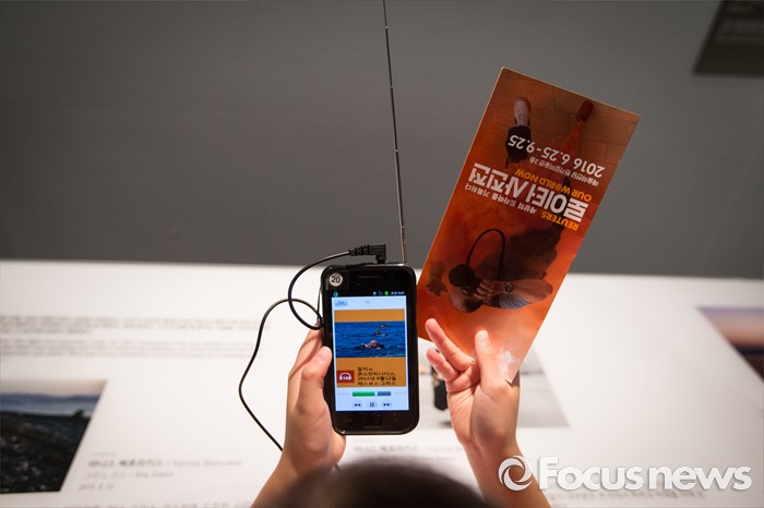 | △ 로이터 사진전, 작품 설명해주는 핸드폰 도슨트 |