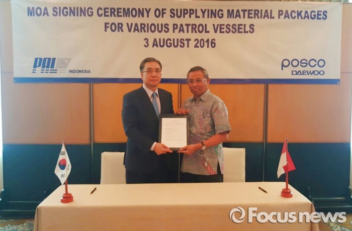 (서울=포커스뉴스) 포스코대우는 인도네시아 최대 국영 조선소와 1억5000만달러(약 1671억원) 규모의 함정 건조용 기자재 공급 계약을 체결했다고 4일 밝혔다.