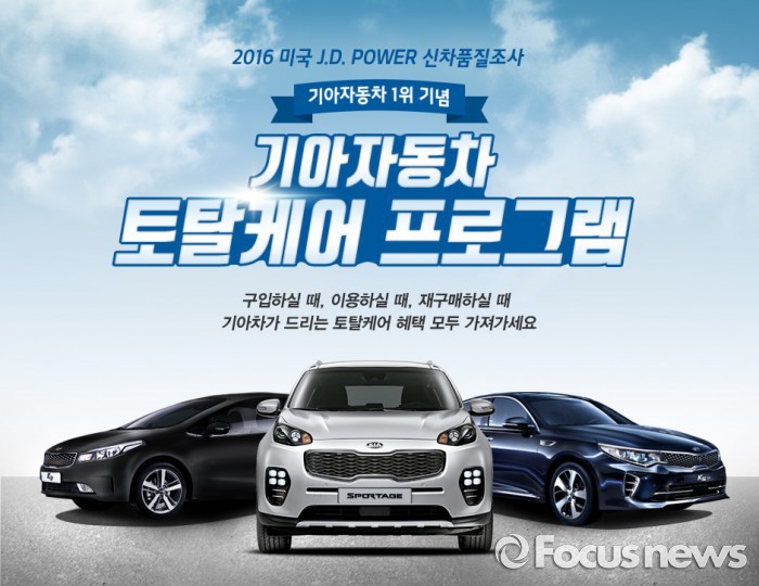 (서울=포커스뉴스) 기아자동차는 8월 K3, K5, 스포티지(쿱, 하이브리드 모델 제외) 개인 출고 고객을 대상으로 유류비 지원, 차종교환, 차량용 와이파이, 중고차 가격보장 등 종합적인 혜택을 제공하는 '토탈케어 프로그램'을 선보인다고 3일 밝혔다.
