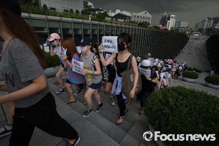 (서울=포커스뉴스) 2일 오후 서울 서대문구 이화여대에서 미래라이프 대학 설립에 반대하는 이화여자대학교 학생들이 교내를 행진하며 시위하고 있다.