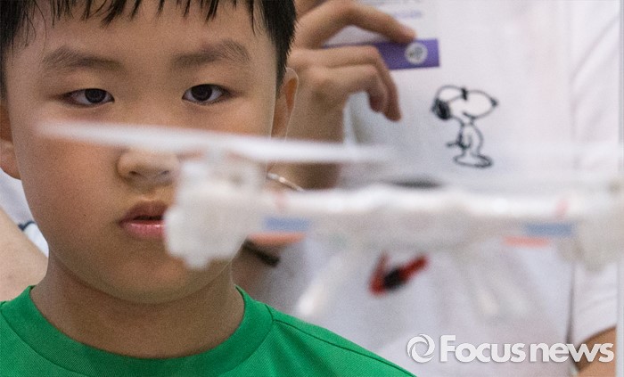 (서울=포커스뉴스) 4일 오전 서울 강남구 코엑스에서 열린 '제20회 대한민국 과학창의축전'을 찾은 한 시민이 드론 조종 체험을 하고 있다.