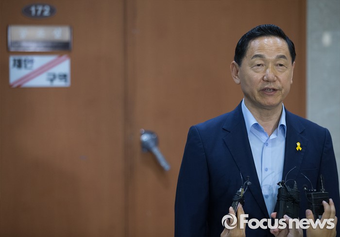 (서울=포커스뉴스) 전당대회 출마를 김상곤 더불어민주당 전 혁신위원장이 4일 오후 서울 여의도 국회 정론관 앞에서 취재진 질문에 답하고 있다.