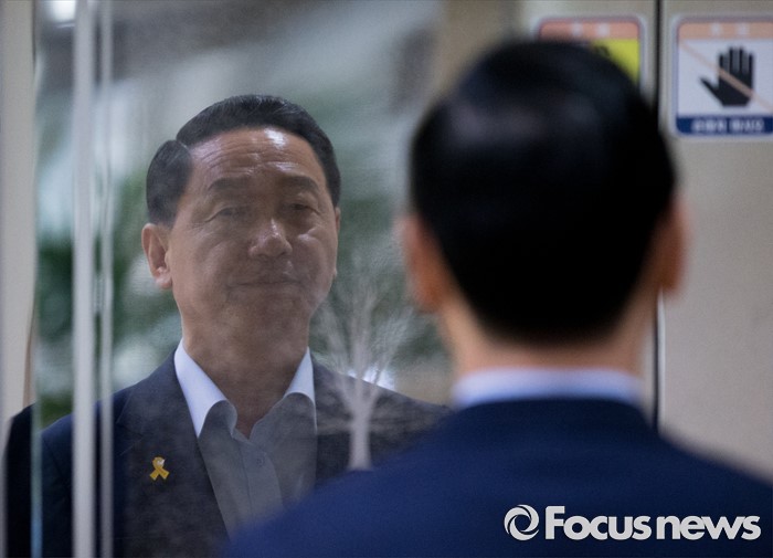 (서울=포커스뉴스) 전당대회 출마를 선언한 김상곤 더불어민주당 전 혁신위원장이 4일 오후 서울 여의도 국회 정론관 앞에서 취재진 질문에 답한 뒤 다음 일정으로 이동하기 위해 승강기를 기다리고 있다.