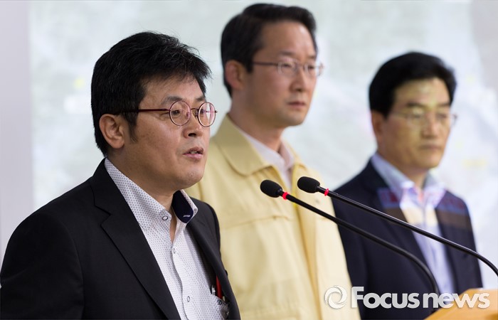 (서울=포커스뉴스) 4일 오후 서울 종로구 정부서울청사에서 서용수(왼쪽) 민관합동 조사단장이 부산-울산 악취발생에 따른 민관합동조사단 결과발표를 하고 있다. 가운데는 김희겸 국민안전처 재난관리실장.