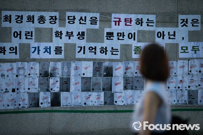 한편, 이화여대 학칙 제1장 1조는 '이화여자대학교는 대한민국의 교육이념과 기독교 정신을 바탕으로 하여 학술의 깊은 이론과 그 광범위하고 정밀한 응용방법을 교수·연구하며 인격을 도약하여 국가와 인류사회의 발전에 공헌할 수 있는 지도여성을 양성함을 목적으로 한다'고 규정하고 있다.(서울=포커스뉴스) 미래라이프 대학 설립에 반대하는 학생들이 엿새째 이화여대 본관을 점거하고 있는 2일 밤, 서울 서대문구 이화여대 교내에 다양한 목소리의 시위성 글들이 붙어 있다. 2016.08.02 김흥구 기자 <사진출처=영화 '타짜' 스틸컷>(서울=포커스뉴스) 지난 3일 오후 서울 서대문구 이화여자대학교에서 졸업생들이 최경희 총장 퇴진을 요구하며 집회를 하고 있다. <사진제공=이화여대 언론팀> 2016.08.04 포커스포토 (서울=포커스뉴스) 지난 3일 오후 서울 서대문구 이화여자대학교에서 졸업생들이 최경희 총장 퇴진을 요구하며 집회를 하고 있다. <사진제공=이화여대 언론팀> 2016.08.04 포커스포토 (서울=포커스뉴스) 30일 오후 서울 서대문구 이화여대 본관에서 경찰들이 고졸 출신 직장인 등을 위한 단과대 설립을 반대하는 학생들과 충돌하고 있다. <사진제공=이대학보사> 2016.07.30 포커스포토 (서울=포커스뉴스) 최경희(오른쪽) 이화여자대학교 총장이 3일 오후 서울 서대문구 이화여대 본관에서 평생교육 단과대학인 '미래라이프대학' 설립 중단 발표를 마친 뒤, 학생과 대화하고 있다. 2016.08.03 김흥구 기자 (서울=포커스뉴스) 이화여대 미래라이프 대학 설립 문제로 학교와 학생들이 갈등을 빚고 있는 2일 오전 서울 서대문구 이화여대 본관 인근에 김활란 초대 총장의 동상이 페인트와 계란으로 얼룩져있다. 2016.08.02 이승배 기자 (서울=포커스뉴스) 이화여대 미래라이프 대학 설립 문제로 학교와 학생들이 갈등을 빚고 있는 2일 오전 서울 서대문구 이화여대 본관 건물 입구에 최경희 총장과의 면담을 요청하는 학생들의 현수막이 걸려있다. 2016.08.02 이승배 기자