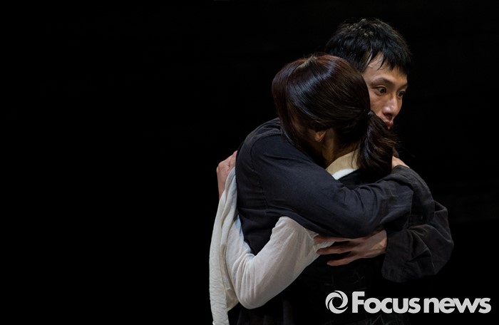 (서울=포커스뉴스) 4일 오후 서울 중구 충무아트센터에서 열린 연극 '햄릿-더 플레이' 언론시연회에 참석한 배우 김동원(왼쪽), 서태영이 열연하고 있다.