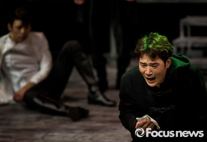 (서울=포커스뉴스) 4일 오후 서울 중구 충무아트센터에서 열린 연극 '햄릿-더 플레이' 언론시연회에 참석한 배우 김강우가 열연하고 있다.
