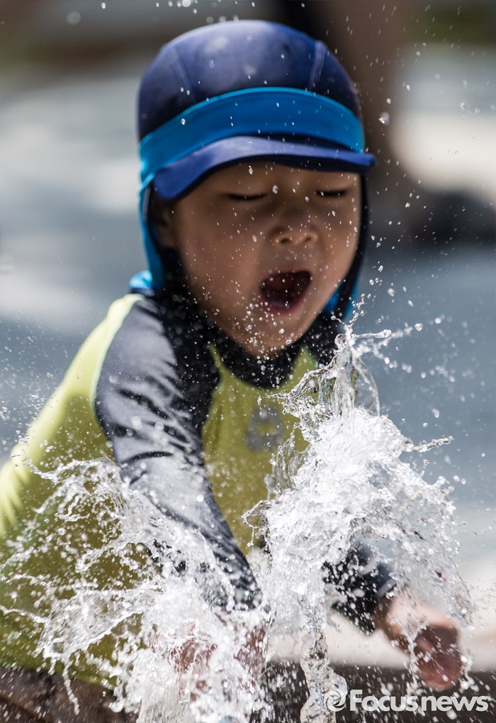 (서울=포커스뉴스) 서울에 첫 폭염경보가 내려진 4일 오후 서울 서초구 양재시민의숲을 찾은 한 아이가 물놀이를 하고 있다.