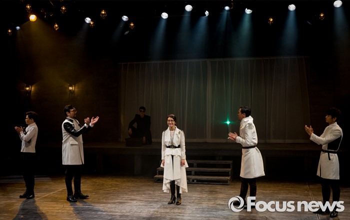 (서울=포커스뉴스) 4일 오후 서울 중구 충무아트센터에서 열린 연극 '햄릿-더 플레이' 언론시연회에 참석한 배우들이 열연하고 있다.