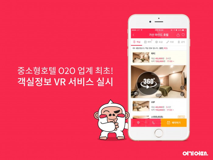 VR은 객실 정보 제공에 최적화된 기능으로 판단, 지난 3개월간 검토와 개발 과정 끝에 '여기어때'에 탑재했다.
