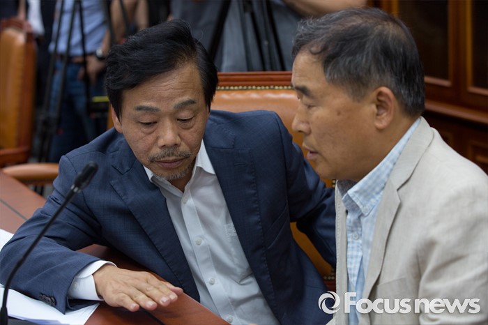(서울=포커스뉴스) 국회 농해수위 부정청탁금지법 소위 위원장인 황주홍(오른쪽) 국민의당 의원과 이완영 새누리당 의원이 4일 오후 서울 여의도 국회에서 열린 농림축산식품해양수산위원회 부정청탁금지법 관련 소위에 참석해 대화 하고 있다.
