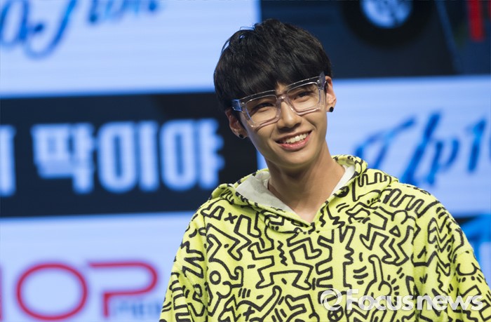 (서울=포커스뉴스) 4일 오후 서울 강남구 일지아트홀에서 열린 아이돌 그룹 업텐션의 미니앨범 'Summer go'발표 쇼케이스에 참석한 멤버 웨이가 포토타임을 갖고 있다.